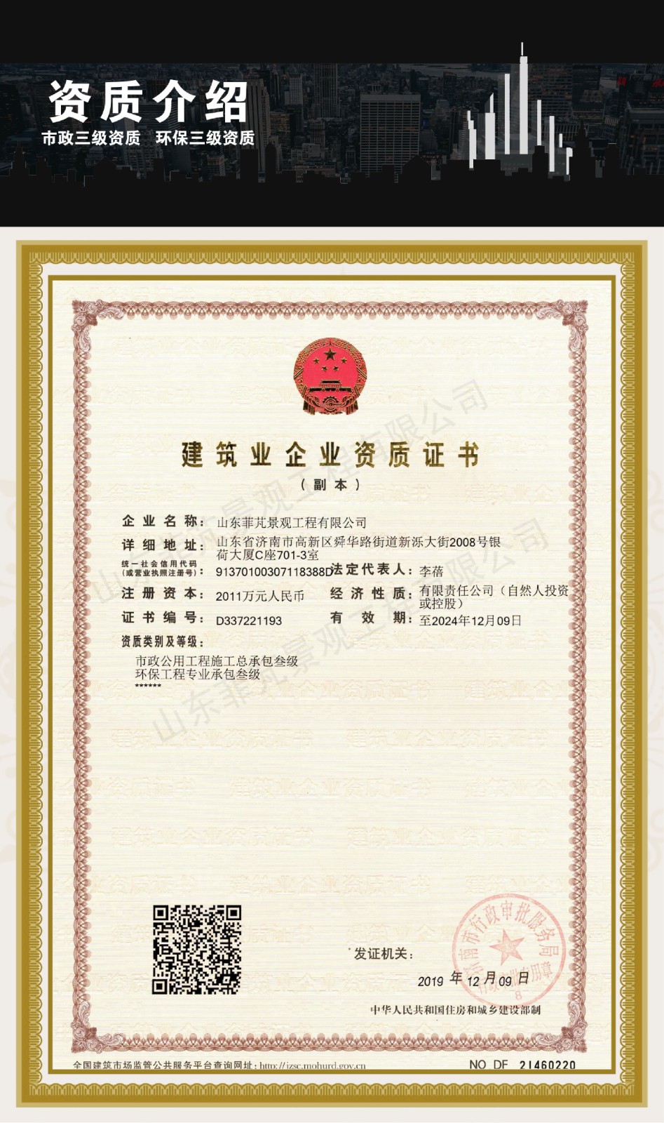 2019年12月9日,我公司正式獲得市政公用工程施工總承包三級(jí)資質(zhì)和環(huán)保工程專業(yè)承包三級(jí)資質(zhì)。這是我公司堅(jiān)持以誠信為先導(dǎo),以創(chuàng)新為動(dòng)力,以服務(wù)為理念所取得的一項(xiàng)重大發(fā)展成果。該項(xiàng)成果的取得,不僅是我公司長(zhǎng)期堅(jiān)持創(chuàng)新服務(wù)理念的有力詮釋,同時(shí)也為我公司未來的發(fā)展奠定了基礎(chǔ)。