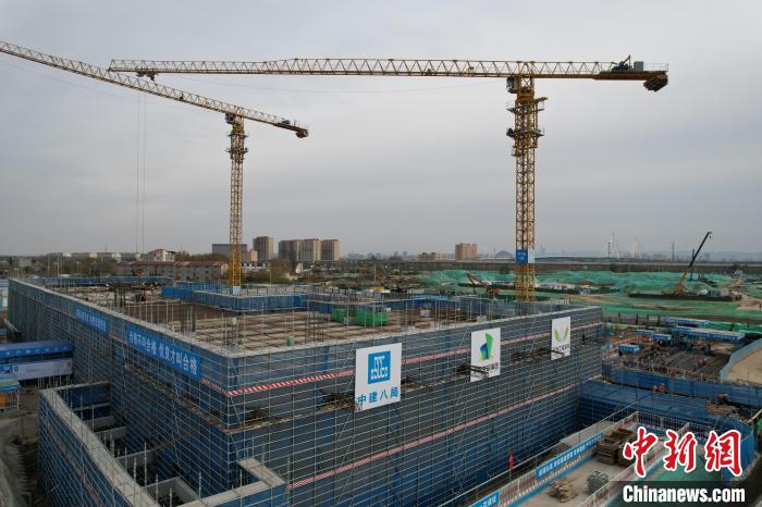 “落子”于中央風(fēng)貌綠軸上的鵲山生態(tài)文化區(qū)博覽園,是展示起步區(qū)生態(tài)文化特色的重要窗口,規(guī)劃面積1.2平方公里。記者在現(xiàn)場看到,園區(qū)按照“一軸一塔三館三區(qū)”的空間結(jié)構(gòu)進行布局,被劃分成不同的功能區(qū)開發(fā)建設(shè)。其中,東北部的鵲華中和苑被兩臺塔吊環(huán)抱,搖臂揮舞間,約15米高的兩層主體結(jié)構(gòu)已現(xiàn)雛形。